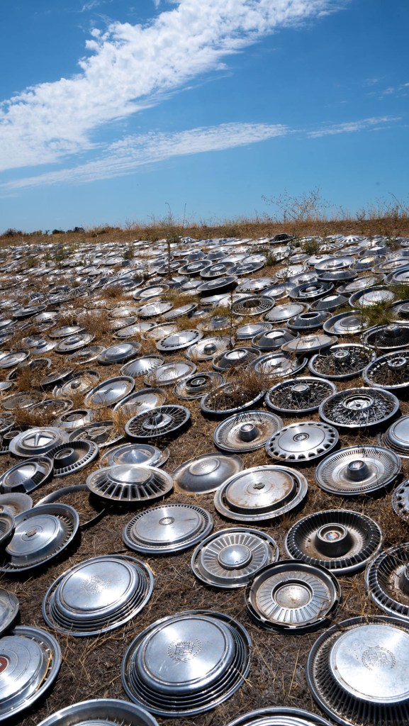 Now patches of green lichen cover the gate, which was measured to stretch from one oak to another. Knotholes, bolts and nails have seen decades of weather. The only thing still bright and shiny on the wood is a small spray of BBs. Five strands of barbed wire stretch out to fence posts that have failed, leaving the barbed wire tangled in vegetation in a double-dutch for eternity.